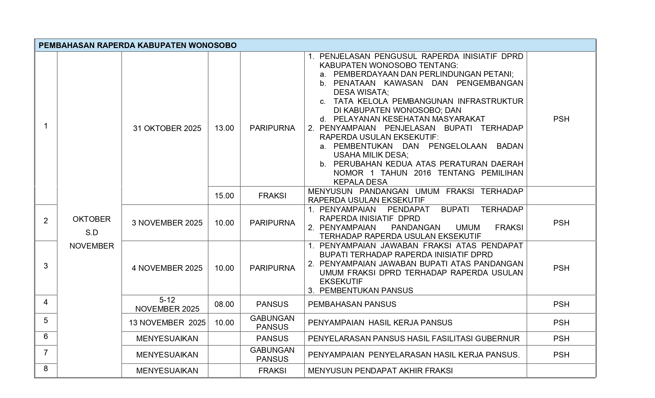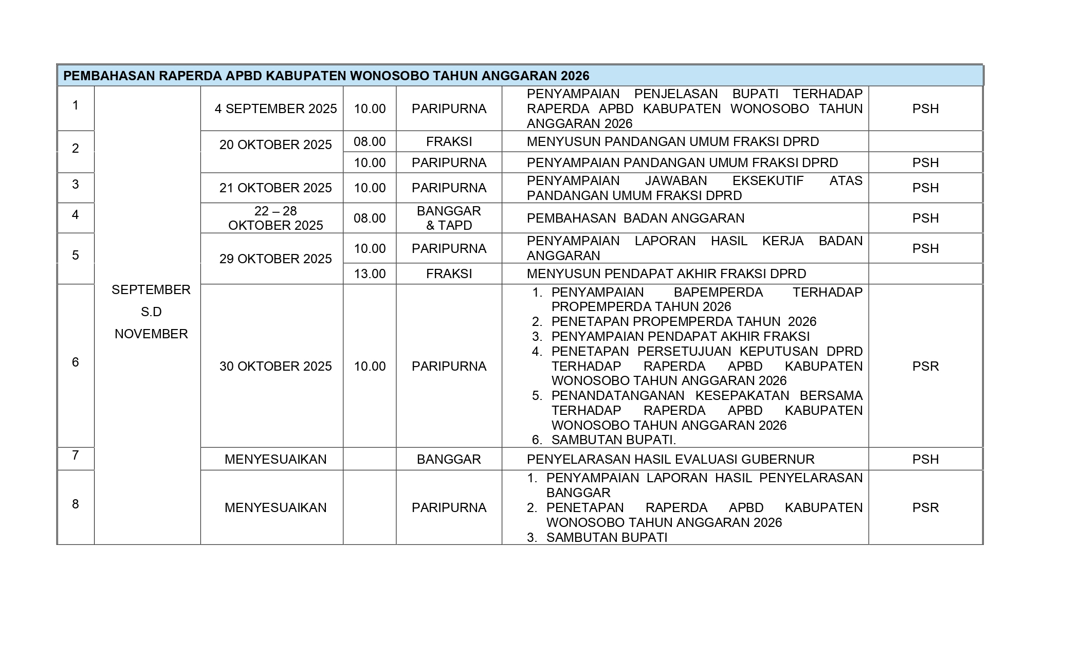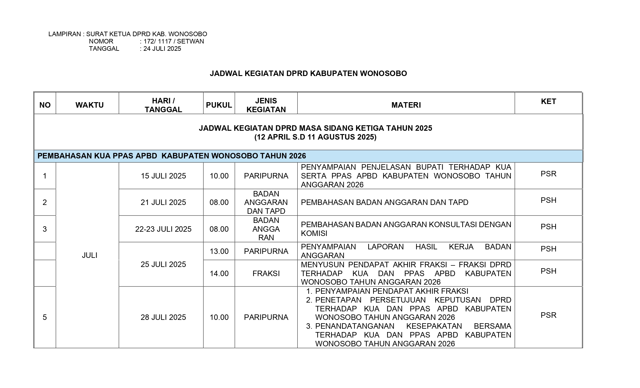 JADWAL KEGIATAN DPRD KABUPATEN WONOSOBO MASA SIDANG KESATU TAHUN 2025