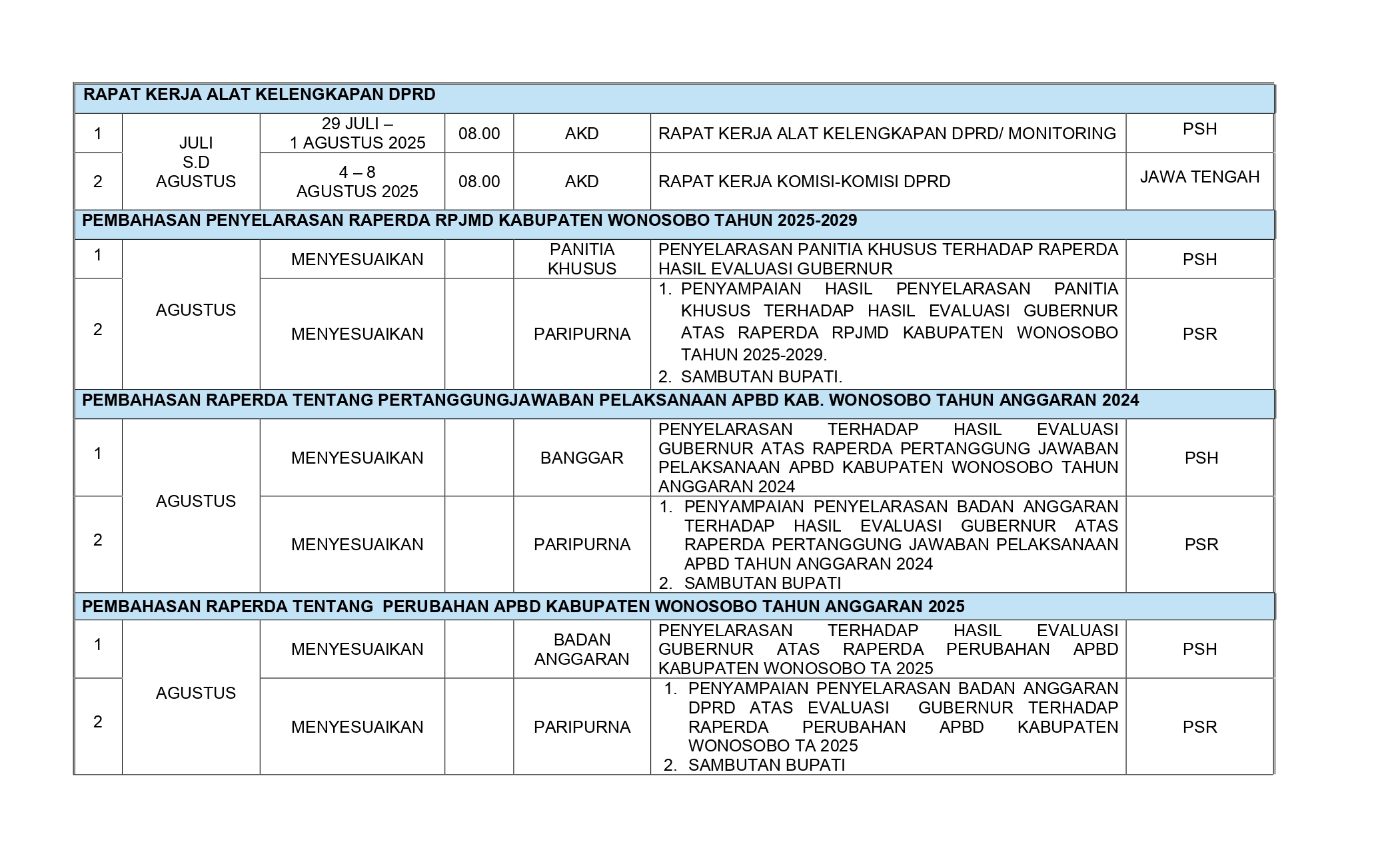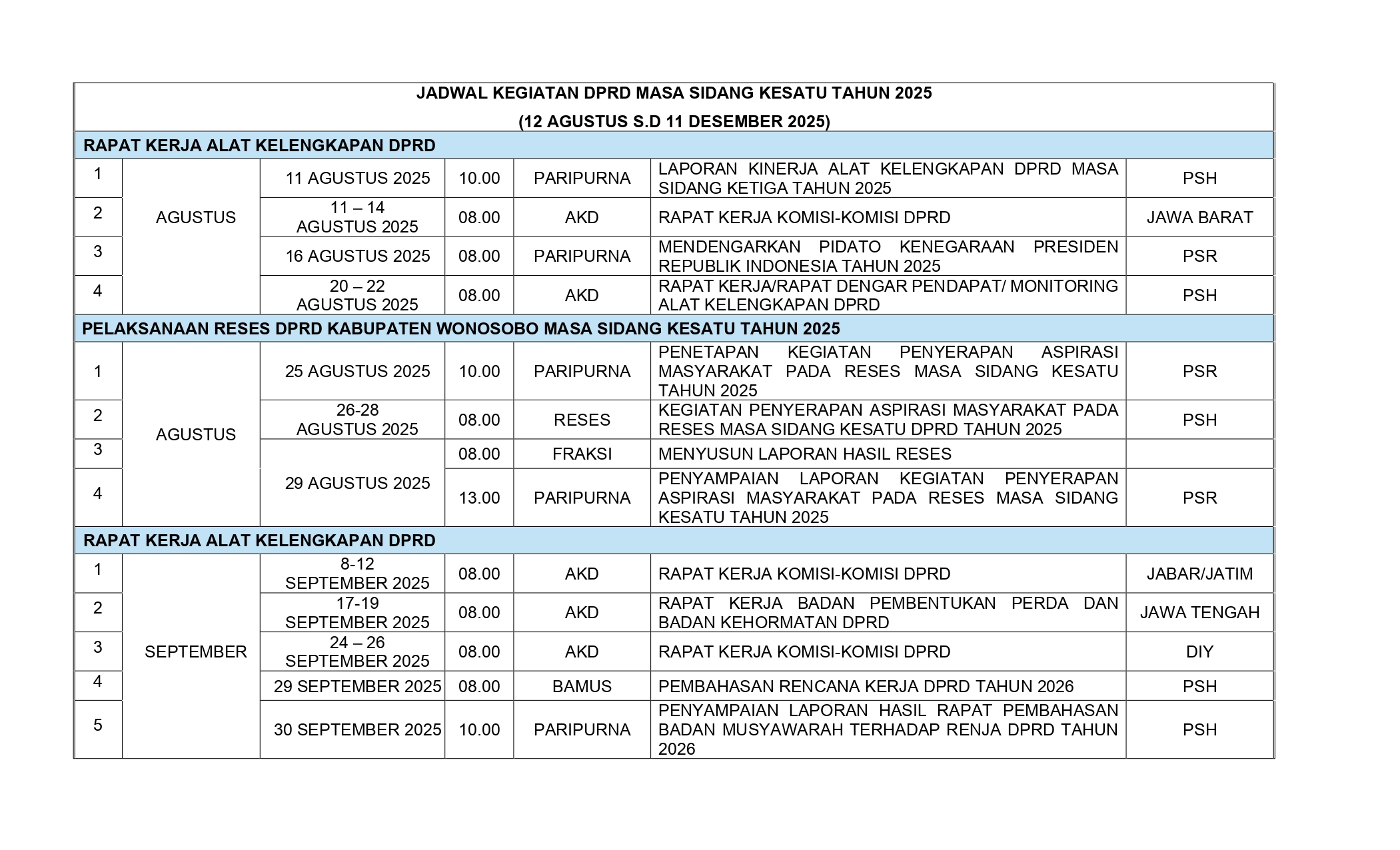 JADWAL KEGIATAN DPRD KABUPATEN WONOSOBO MASA SIDANG KESATU TAHUN 2025