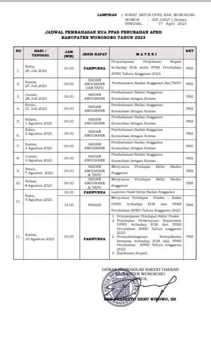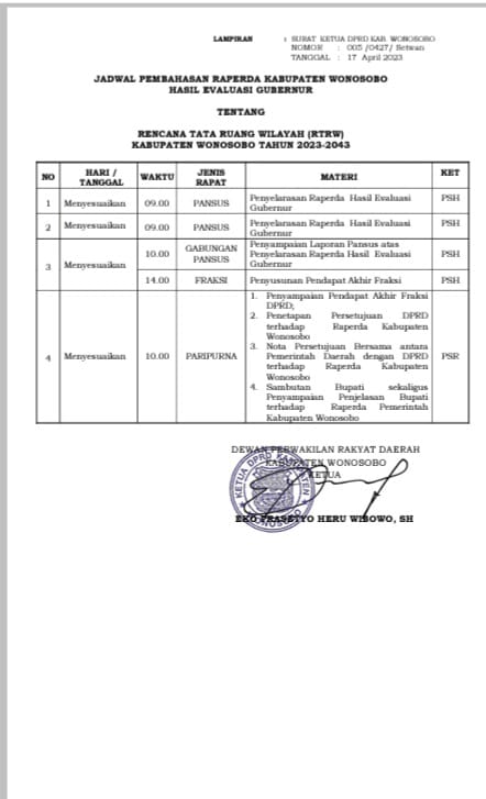 JADWAL KEGIATAN DPRD KABUPATEN WONOSOBO MASA SIDANG KESATU TAHUN 2025