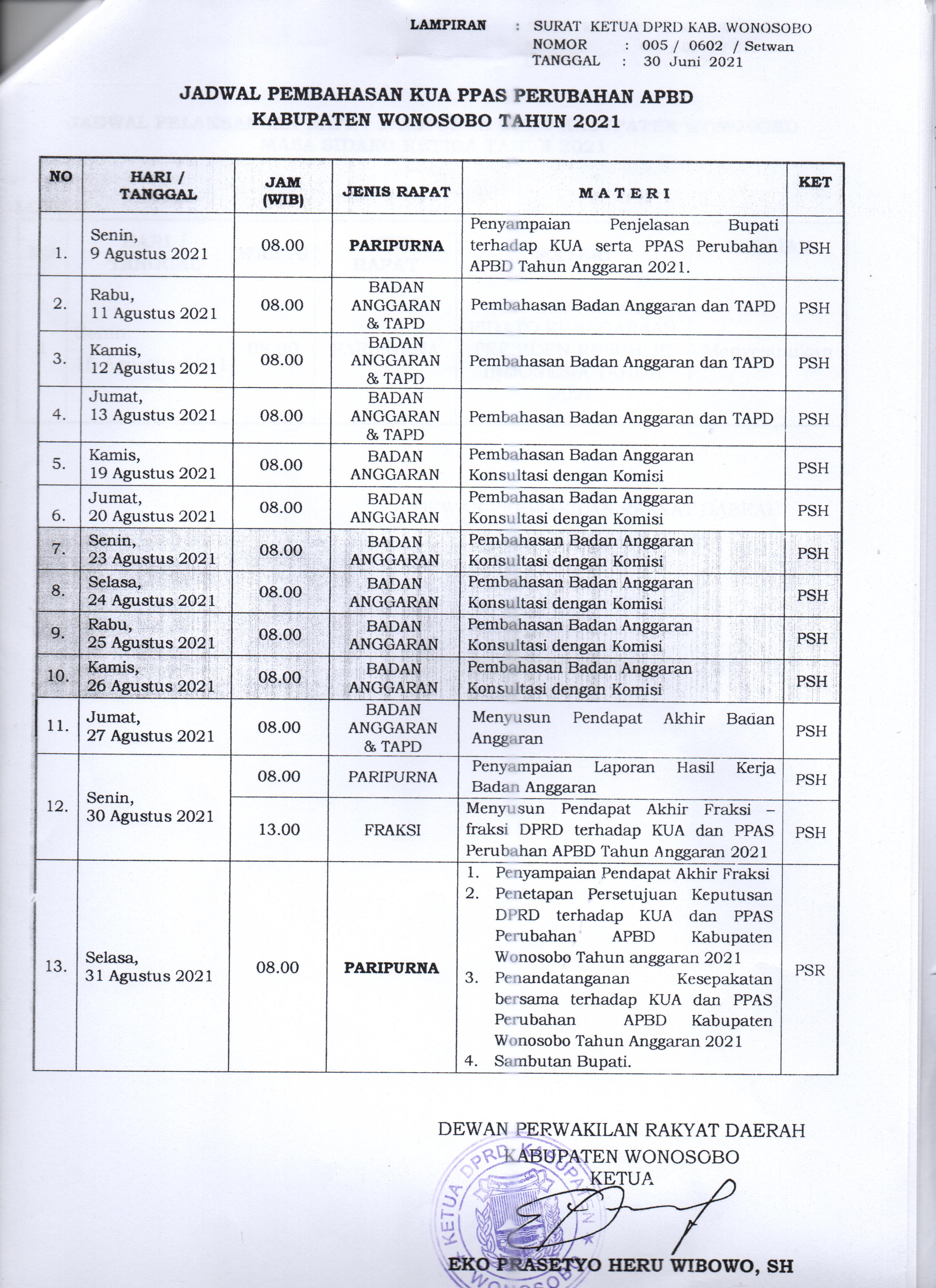 JADWAL PEMBAHASAN KUA SERTA PPAS PERUBAHAN APBD TAHUN 2021