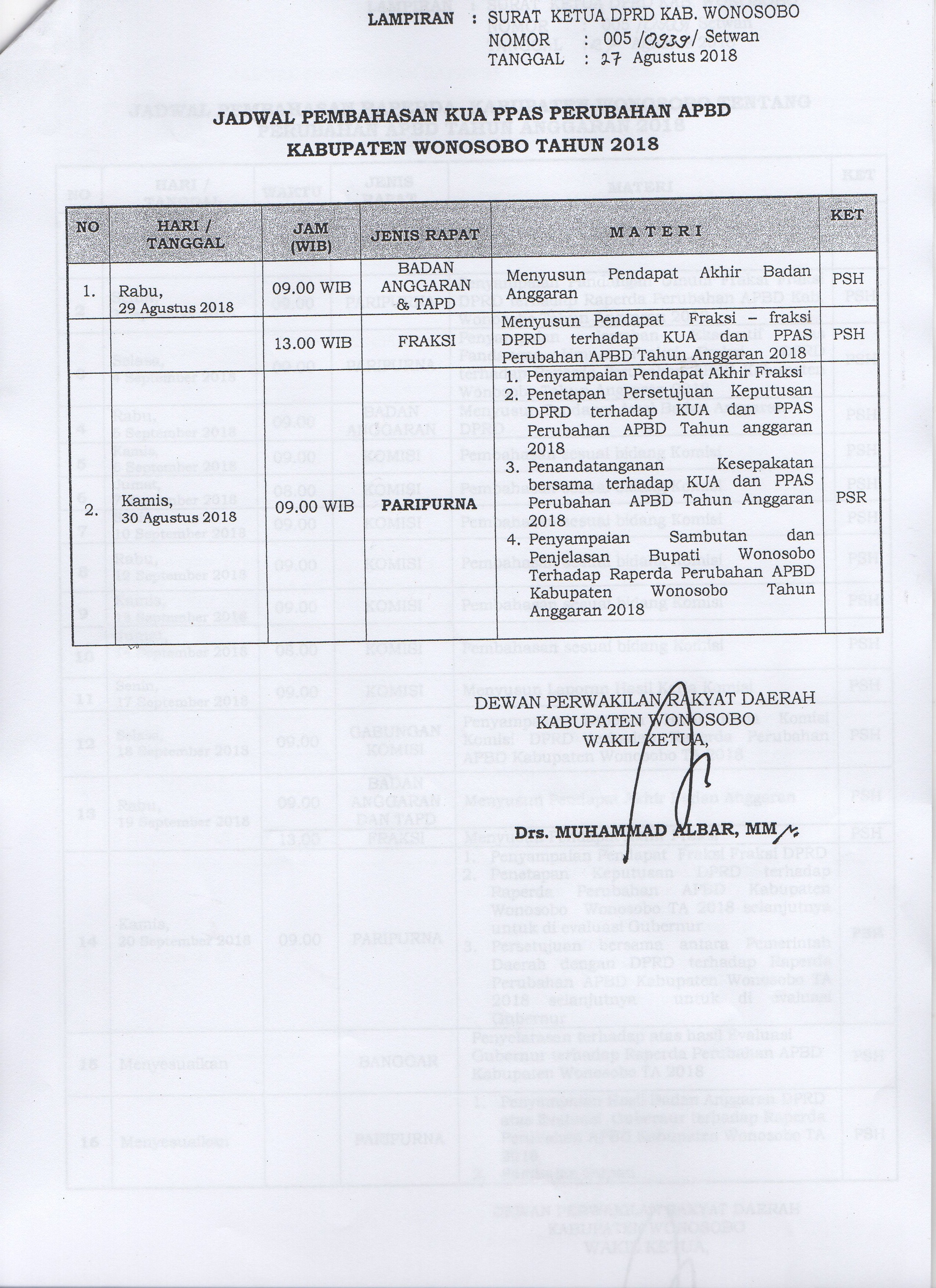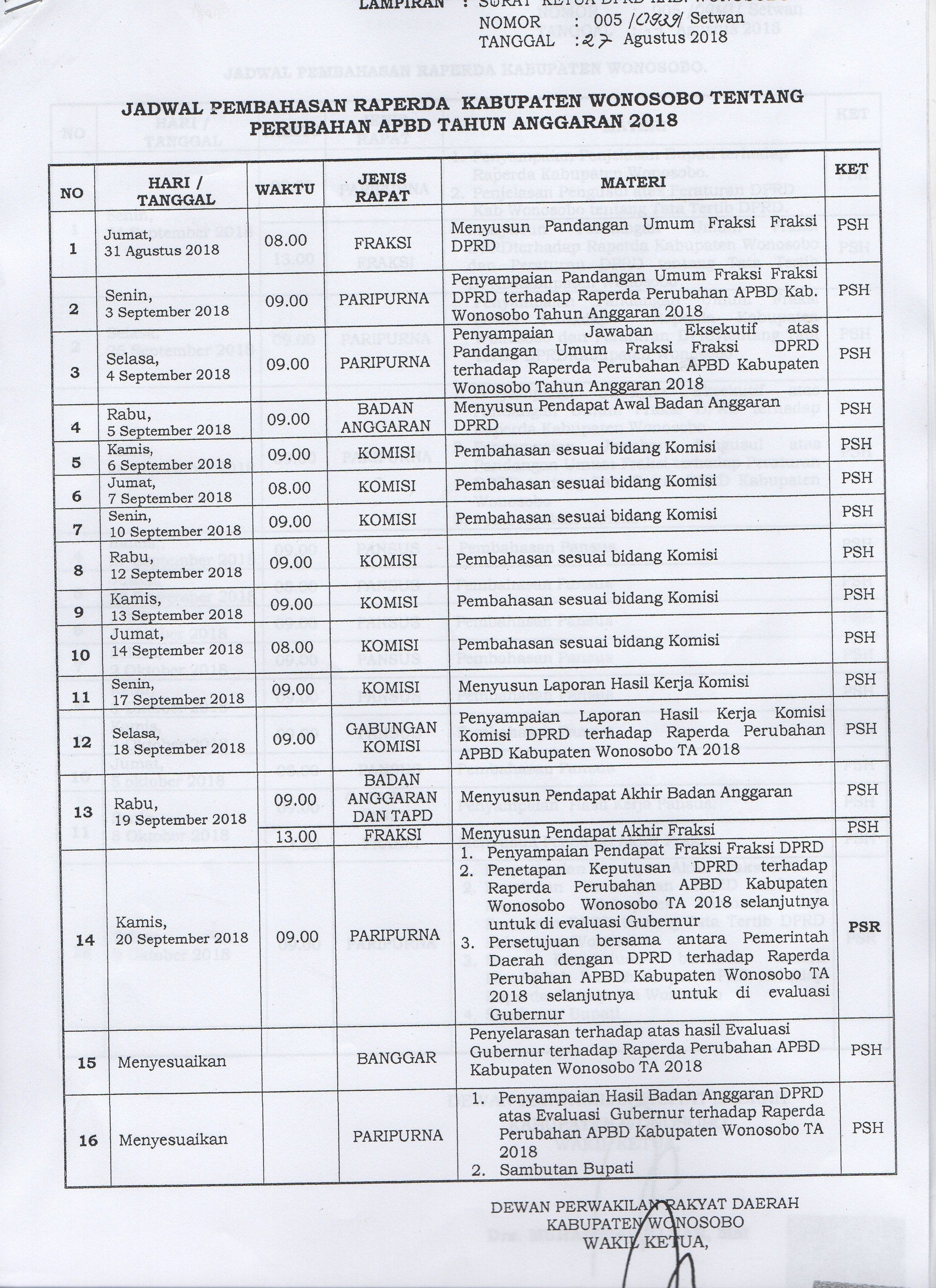 Jadwal Pembahasan KUA PPAS Perubahan APBD Kabupaten Wonosobo Tahun 2018
