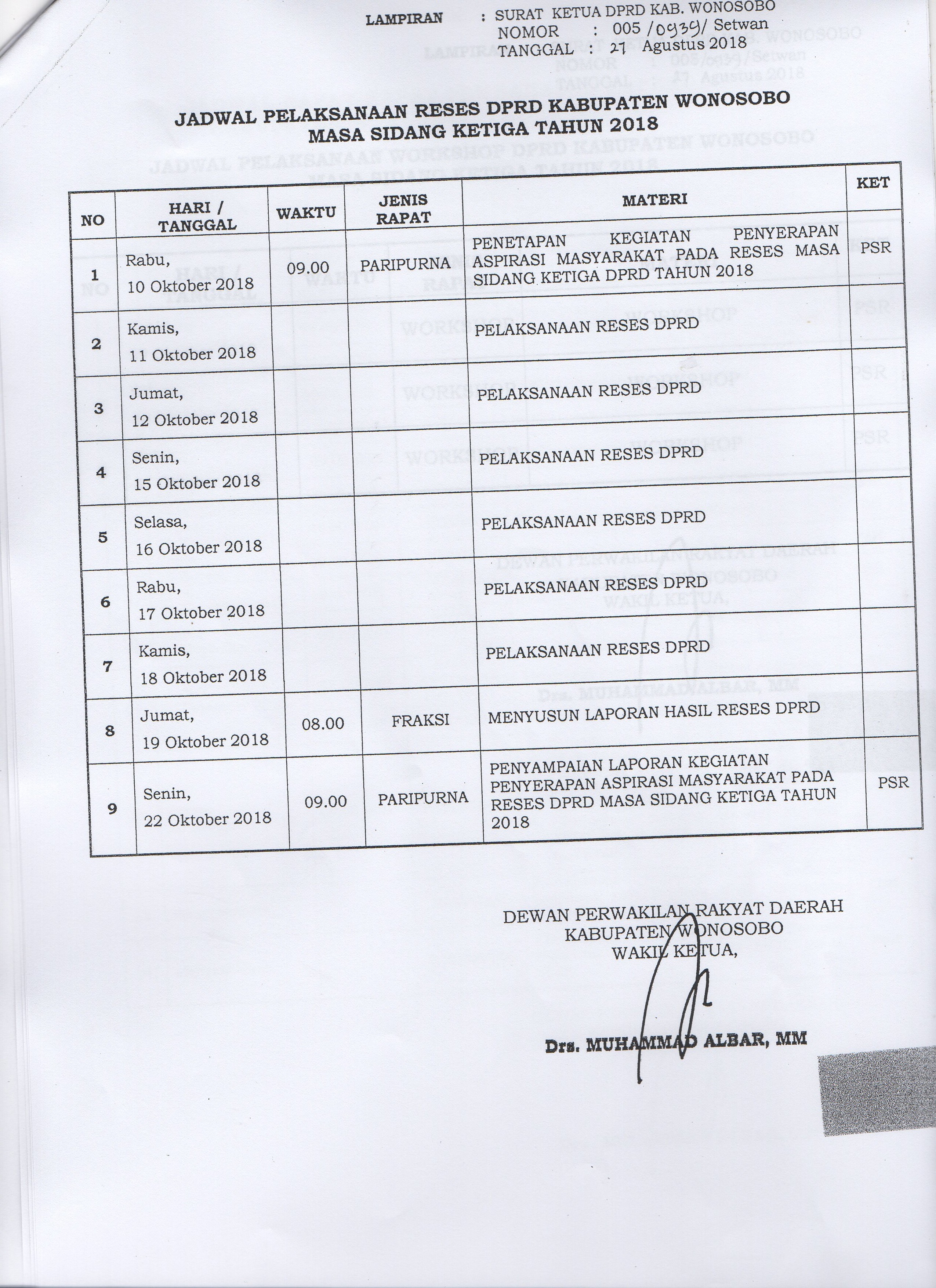 Jadwal Pelaksanaan Reses DPRD Kabupaten Wonosobo Masa Sidang Ketiga Tahun 2018