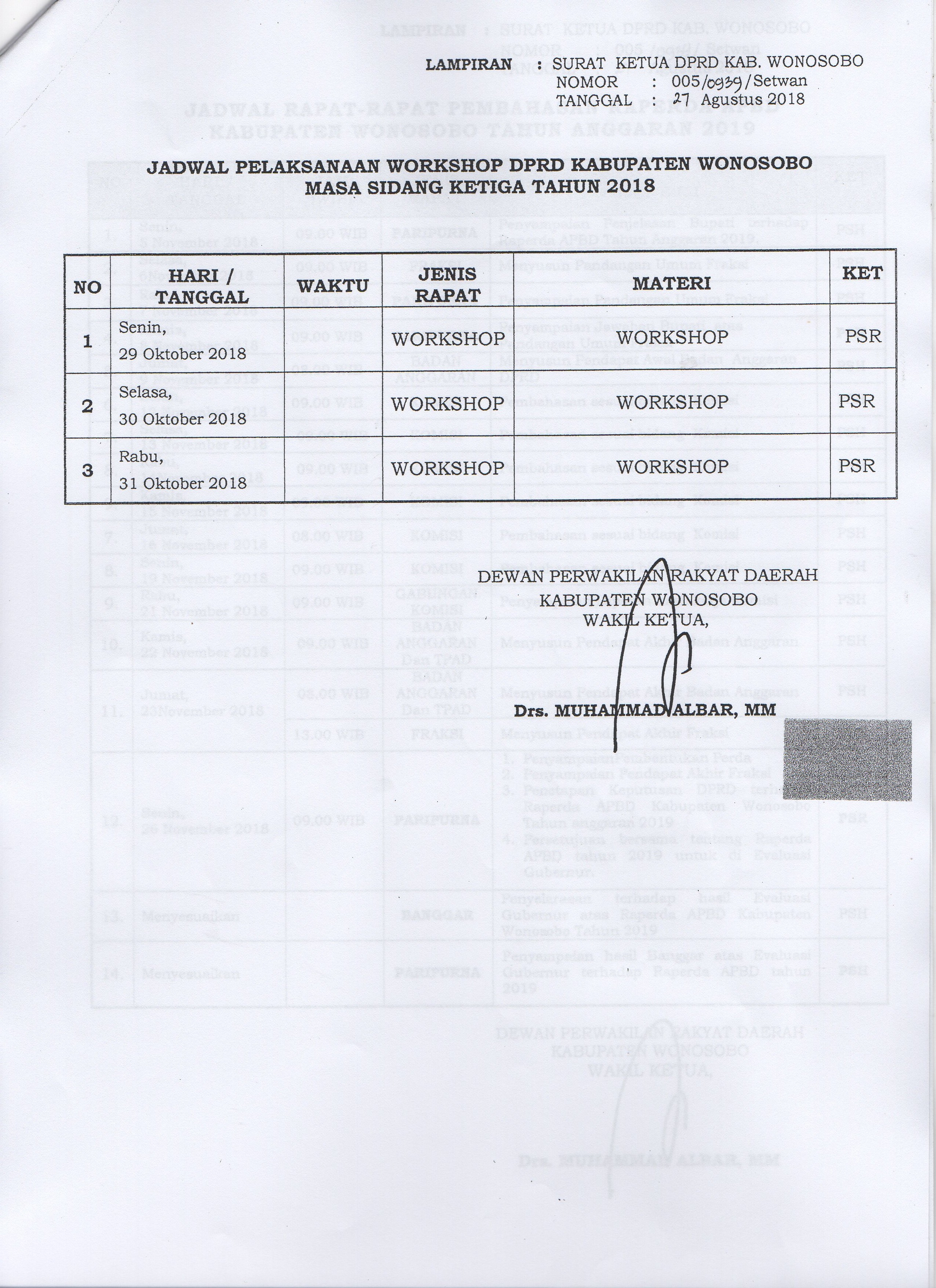 Jadwal Pelaksanaan Workshop DPRD Kabupaten Wonosobo Masa Sidang Ketiga Tahun 2018