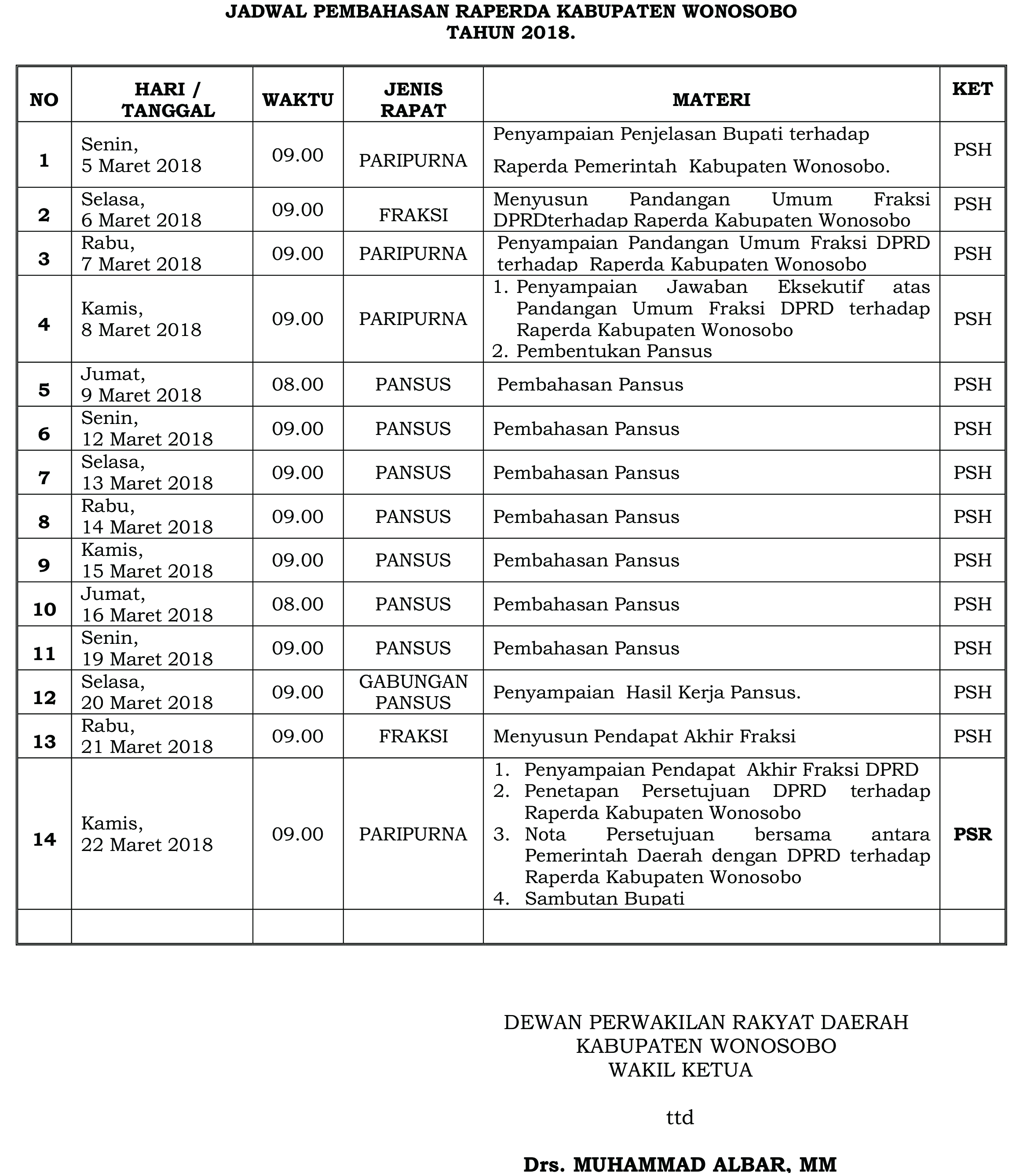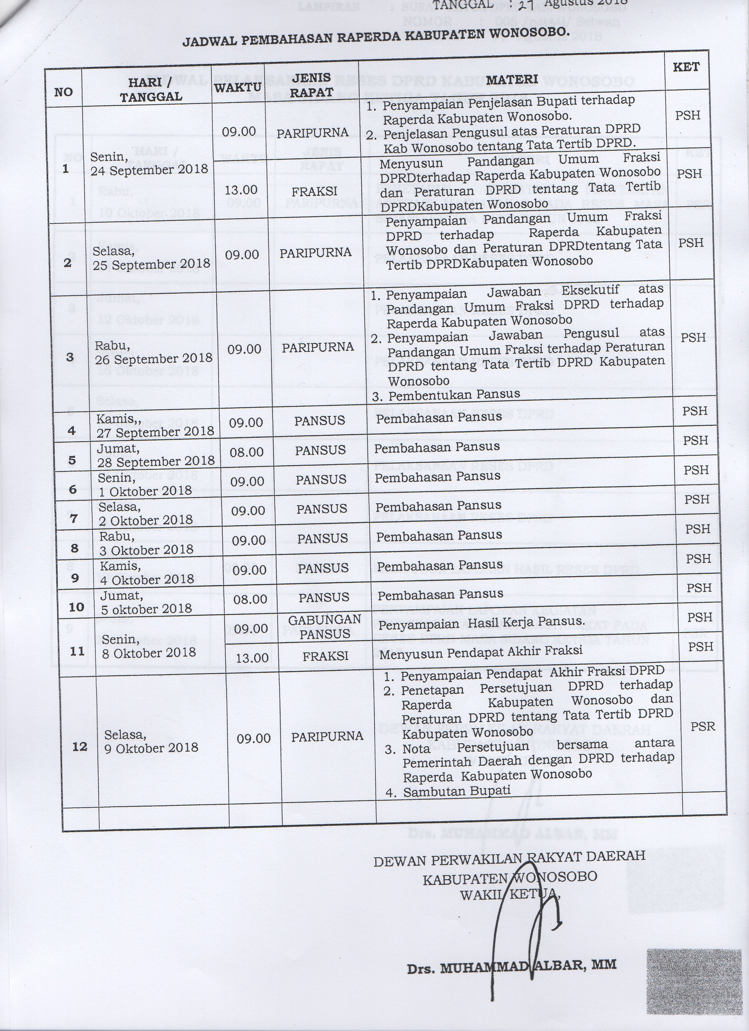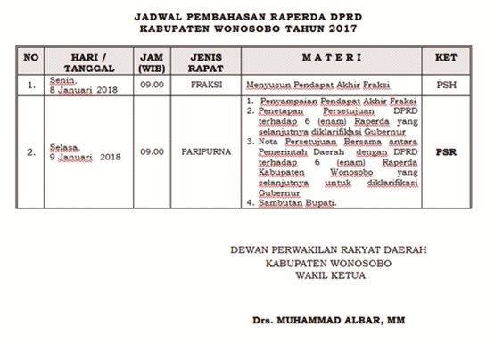 Jadwal Pembahasan RAPERDA Kabupaten Wonosobo