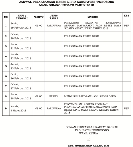 Jadwal Reses DPRD Masa sidang Kesatu Tahun 2018