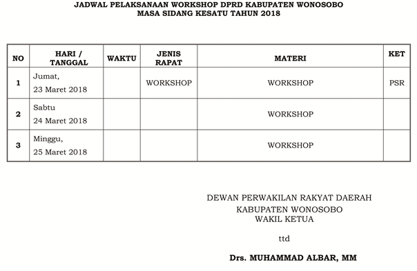 Jadwal Workshop DPRD Masa Sidang Kesatu Tahun 2018