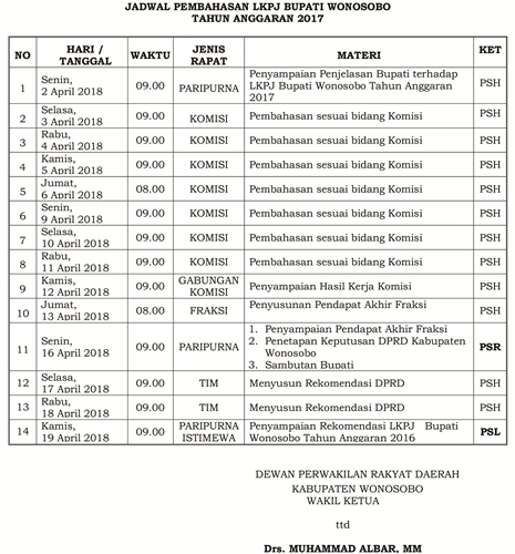 Jadwal Pembahasan LKPJ Bupati Wonosobo Tahun Anggaran 2017