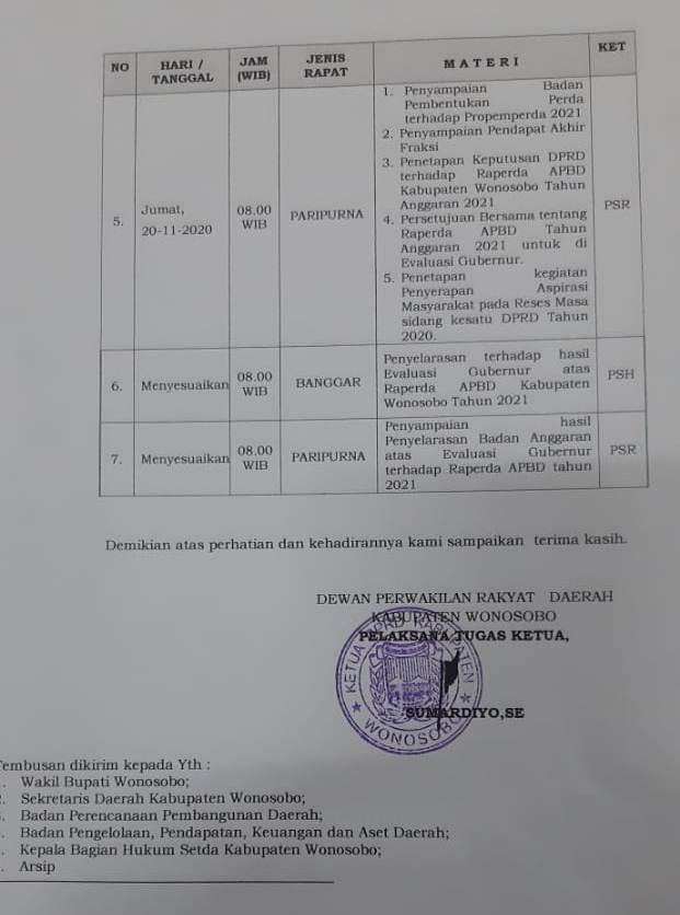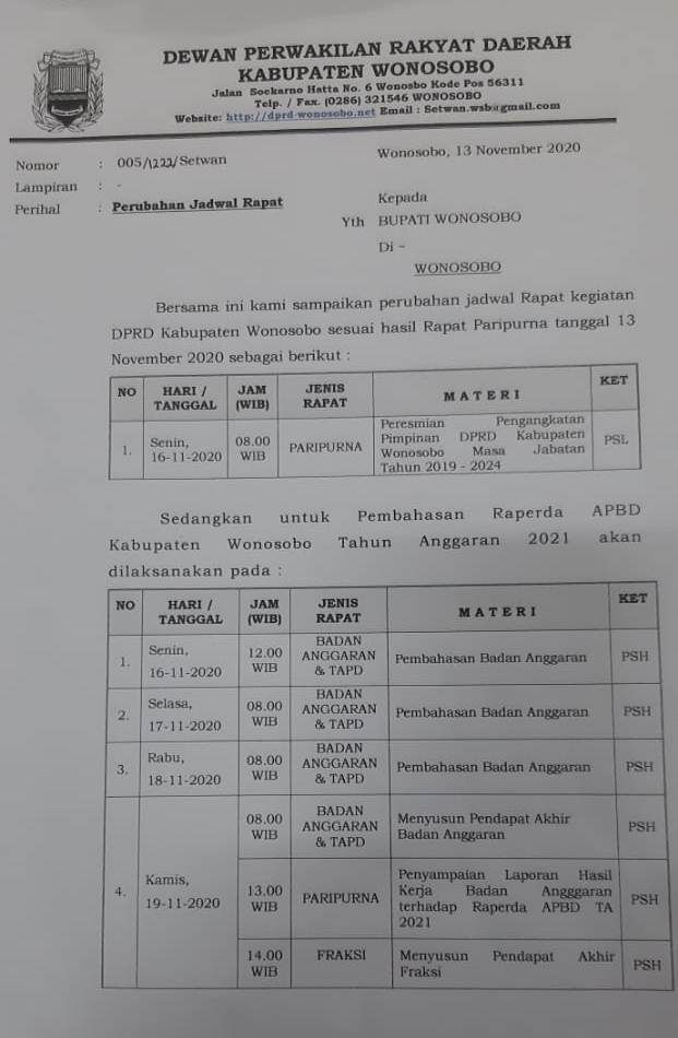 Perubahan Jadwal Pembahasan Raperda APBD Tahun 2021