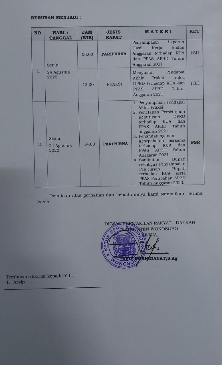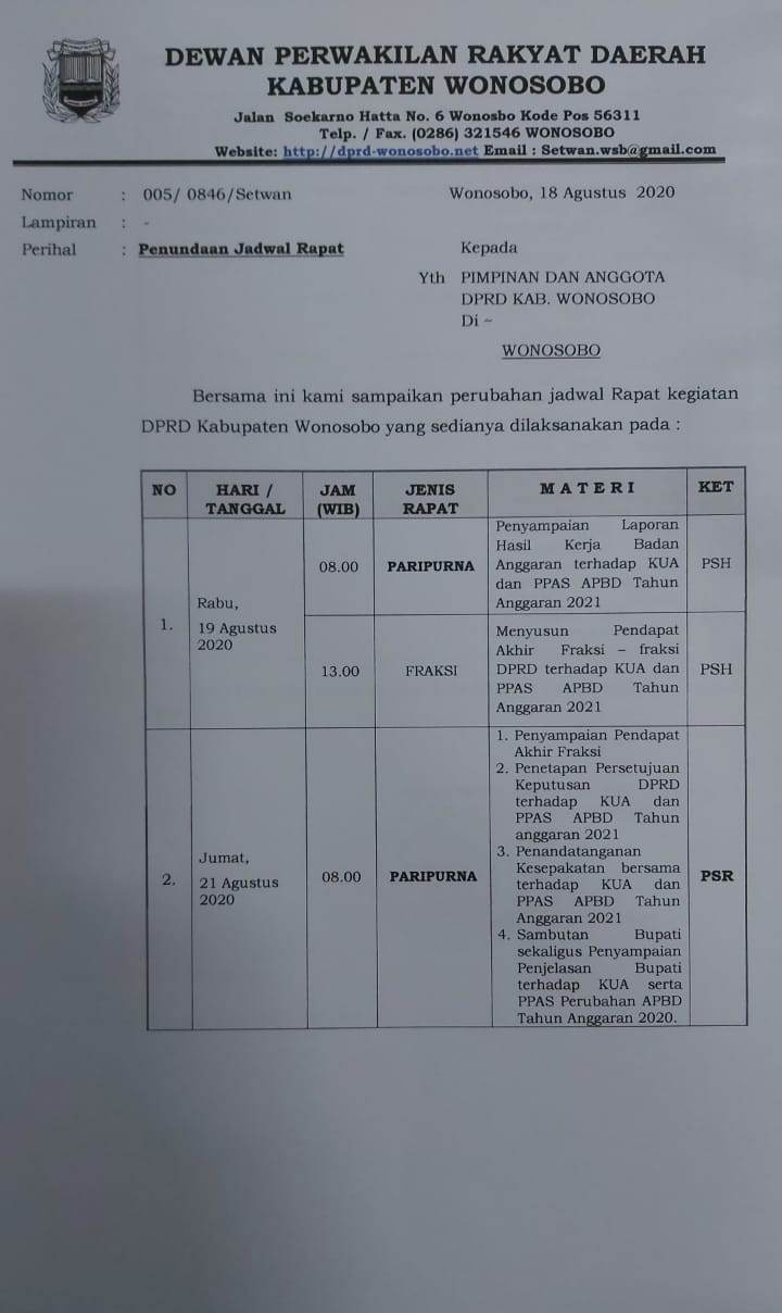 Jadwal Perubahan Tata Tertib DPRD Kabupaten Wonosobo